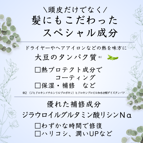 さらに、頭皮にも髪にもこだわった成分を贅沢配合。